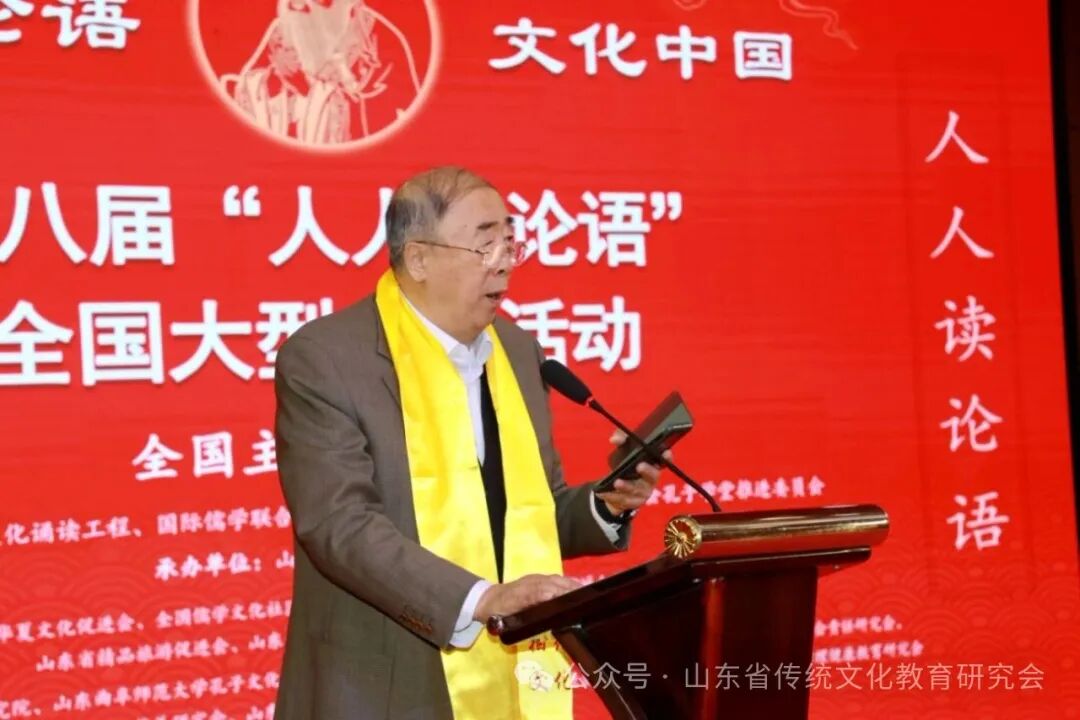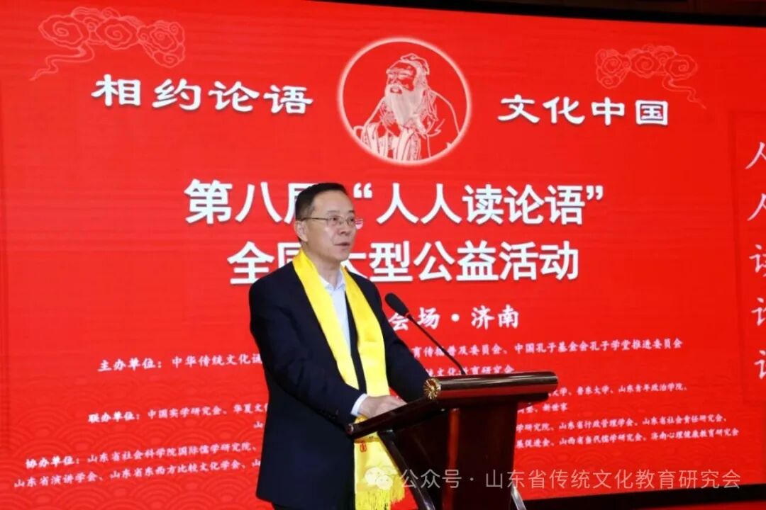 山东省政协原副主席栗甲在开幕式致辞,并代表活动承办方发出全民“人人读《论语》活动倡议”。