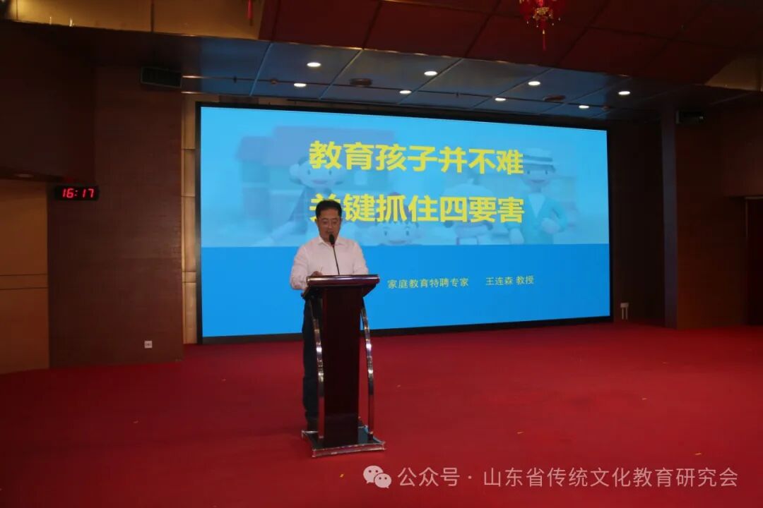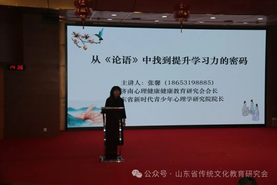 《论语》智慧与家庭教育报告会旨在用优秀传统文化赋能现代家庭教育,构建新时代家校社协同育人体系,促进家庭教育可持续发展。山东省新时代青少年心理学研究院院长、心理教育专家张馨以《从<论语>智慧中找到提升学生学习力密码》为主题,结合25年心理学研究和实战心理咨询实践经验和案例经验,并根据当代家庭教育痛点与学生学习力提升难点,通过一个个家庭教育问题故事的剖析,深入浅出地分享与讲解,把在场人员带入了深深地反思与体悟中;山东省传统文化教育研究会副会长、《父母规》《心灵卫士》《云脑学习法》课程创办人温韬以《用《论语》打造学能家庭》为主题进行了报告。他提出:传统文化中有大量关于学能提升的内容,《论语》等经典蕴藏着学习的智慧;聊城大学教授王连森以《家庭教育并不难,关键抓住“四要害”》为主题进行了报告;山东第一医科大学心理学教授冯舒泰以《学<论语>做智慧父母》为主题,从《论语》对家庭教育的意义、智慧及实践为主要内容进行了精彩的报告;鲁东大学实验小学校长陈红霞分享了“传统文化校本课程开发”的实践经验。本次报告会不仅为家庭教育注入了传统文化智慧,为全国家庭教育的创新发展提供了有益探索。