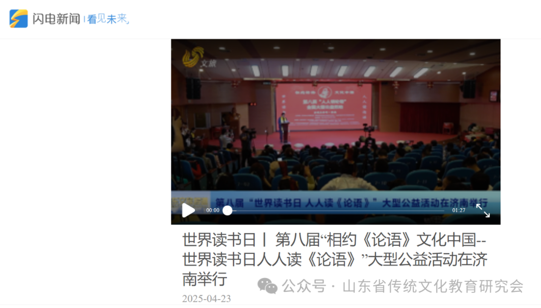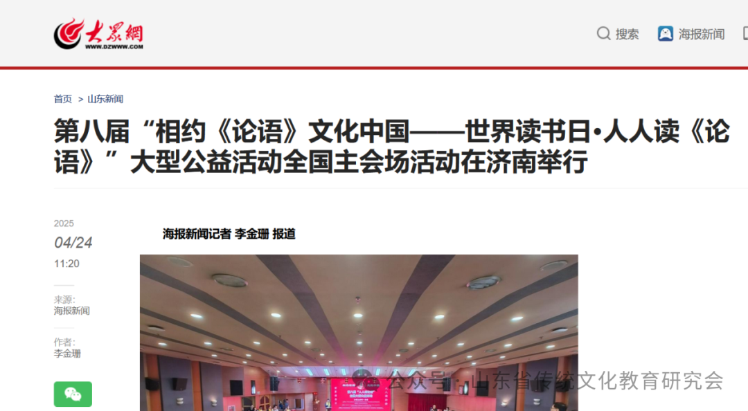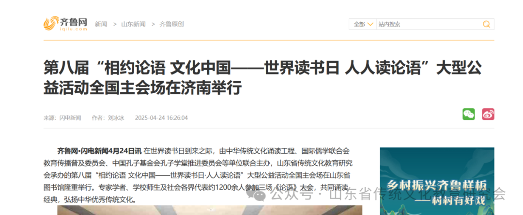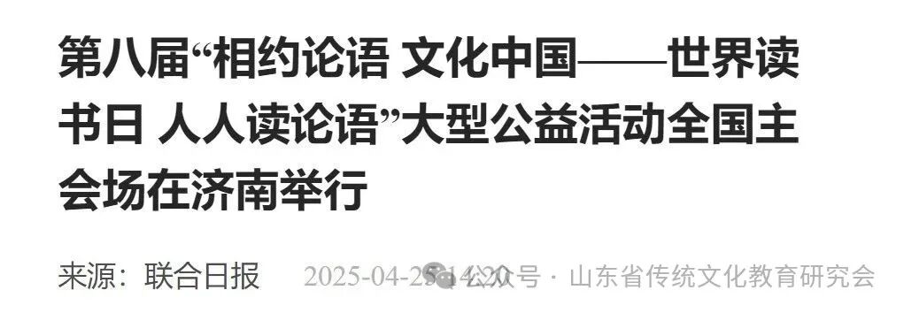 为大力弘扬中华优秀传统文化,培养民族精神,塑造中国品格,增强文化自信,推动书香社会、文化强国建设,在国际读书日和“阅动山东”读书月之际,由国际儒学联合会教育传播普及委员会、中国孔子基金会孔子学堂推进委员会、中华传统文化诵读工程主办,山东省传统文化教育研究会具体承办,山东社会科学院、聊城大学、鲁东大学、山东青年政治学院、山东省精品旅游促进会、山东外事职业大学、山东现代学院、山东省图书馆等联办,山东社会科学院国际儒学研究院、山东省社会责任研究会、山东省演讲学会、山东省东西方比较文化学会、山东省公益慈善研究会等协办的第八届“相约《论语》 文化中国--世界读书日 人人读《论语》”全国主会场系列活动在济南和山东各地分会场成功举办。本次活动丰富多彩、亮点纷呈、盛况空前,得到了社会各界的广泛关注和好评。
