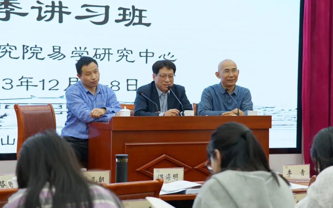 12月8日,温海明教授结合无妄卦、蒙卦、师卦、比卦、小畜卦、大有卦等卦的卦变问题,具体地对《周易明意》构建“人天之意”哲学体系和“卦变”理论进行了深入细致的分析。专题讲座结束后,讲习班举行了结业仪式。