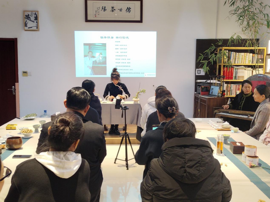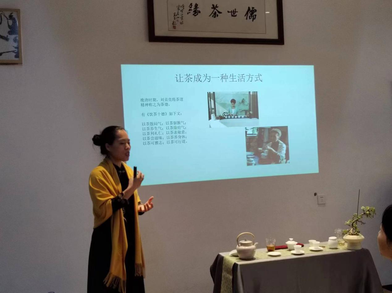 茶音袅袅,茶韵悠悠。伴随着行云流水的古琴音乐,娴静柔美的茶艺表演拉开了活动的序幕,温杯洁具,洗茶,出汤,均匀茶汤,品茗,整个茶艺表演,意蕴丰足,令大家耳目一新,大开眼界。在茶艺师的指导下,大家亲自动手体验冲泡技巧、品鉴茶叶,相互之间不时交流茶艺心得,感受“嫩芽香且灵,吾谓草中英”的传统茶艺,沉浸式体验中国茶文化的源远流长、博大精深。茶艺师还给大家详细讲解了茶的发展历史、茶的分类、茶的鉴别方法、茶的妙用、茶礼仪以及各类茶器的使用方法等茶专业知识,干货满满,大家受益匪浅。