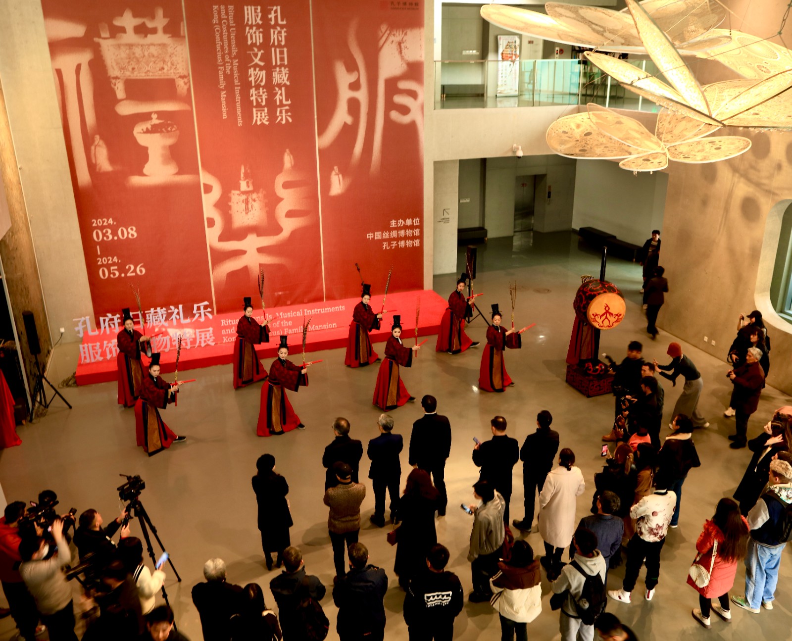 由中国丝绸博物馆和孔子博物馆共同主办的“孔府旧藏礼乐服饰文物特展”3月7日在中国丝绸博物馆隆重开幕。