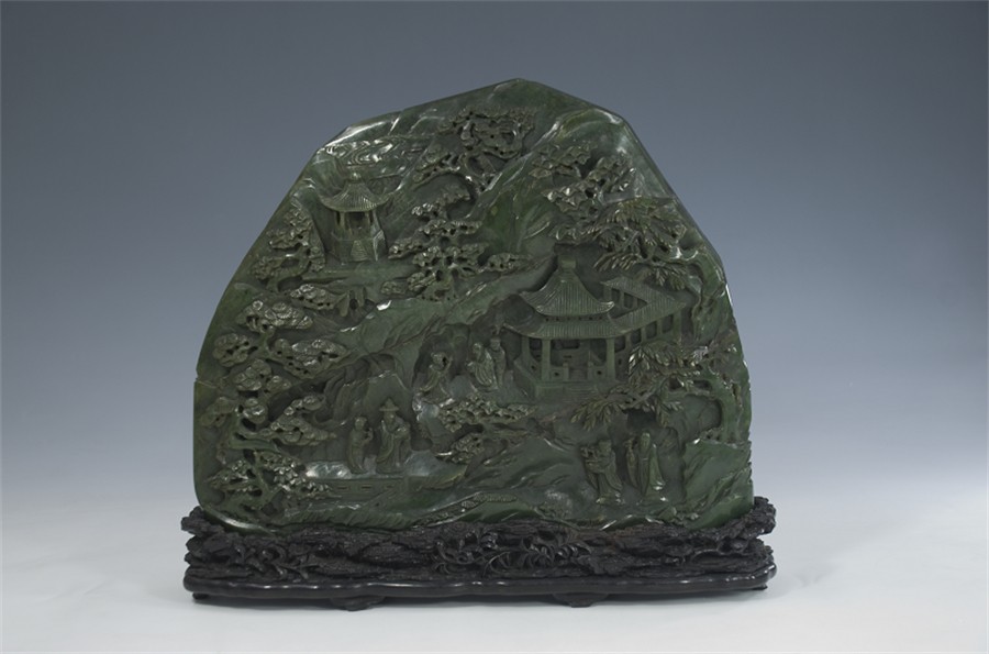 雕楼阁人物碧玉山子清孔子博物馆藏