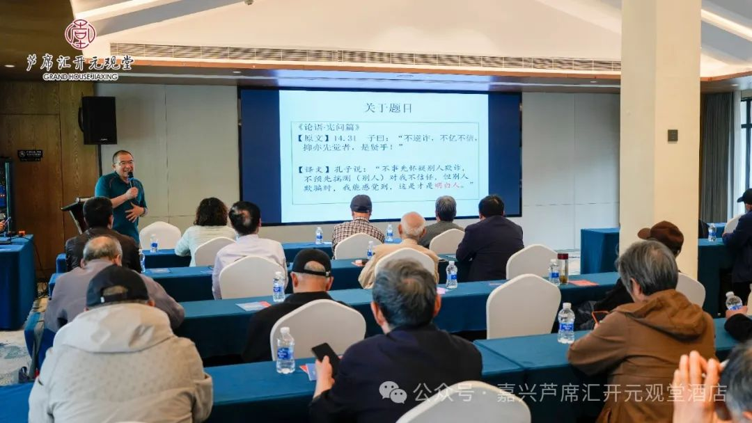 4月15日下午,浙江嘉兴芦席汇开元观堂酒店二楼开元厅热闹非凡。一场主题为“不逆诈,不亿不信——从孔子思想谈防范电信网络诈骗”的公益讲座在此举行,吸引了40多位航明社区的党员同志和街区游客参加。