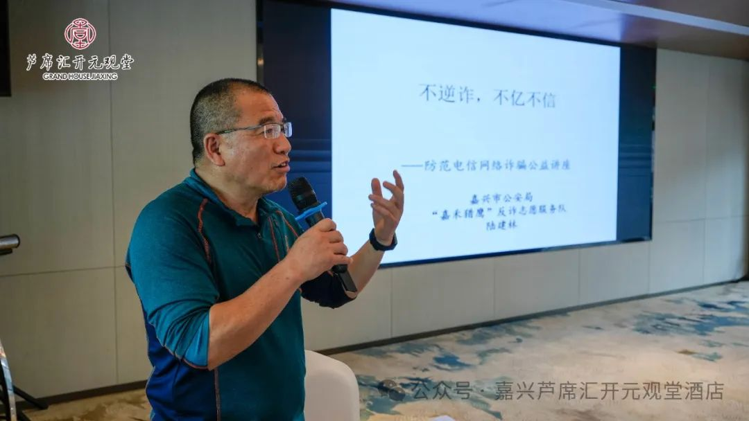 本次活动特别邀请了嘉兴孔子学堂公益讲师、市公安局反诈专家陆建林。讲座中,陆建林结合孔子思想中的诚信、仁爱等核心观念,深入浅出地讲解了电信网络诈骗的危害性和防范方法。