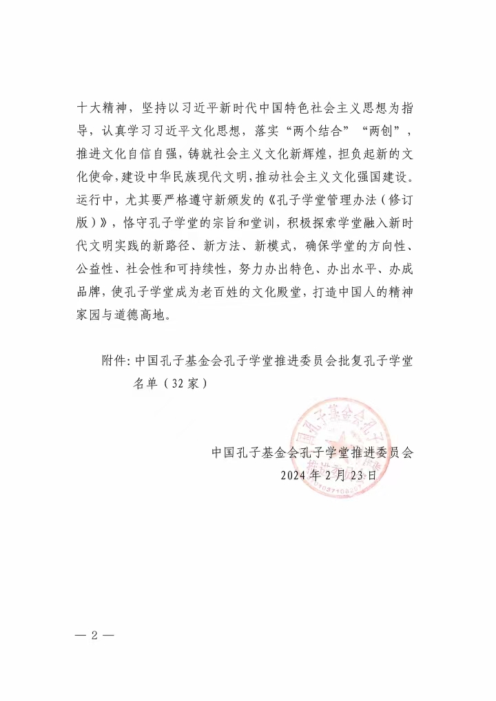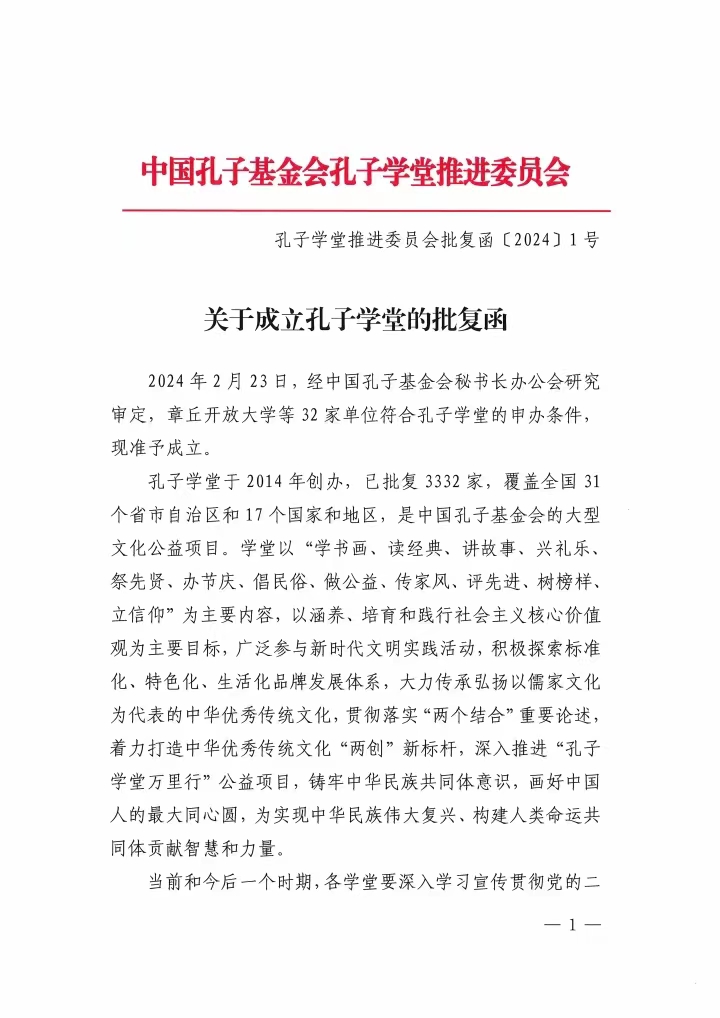 孔子学堂推进委员会批复函【2024】第1号