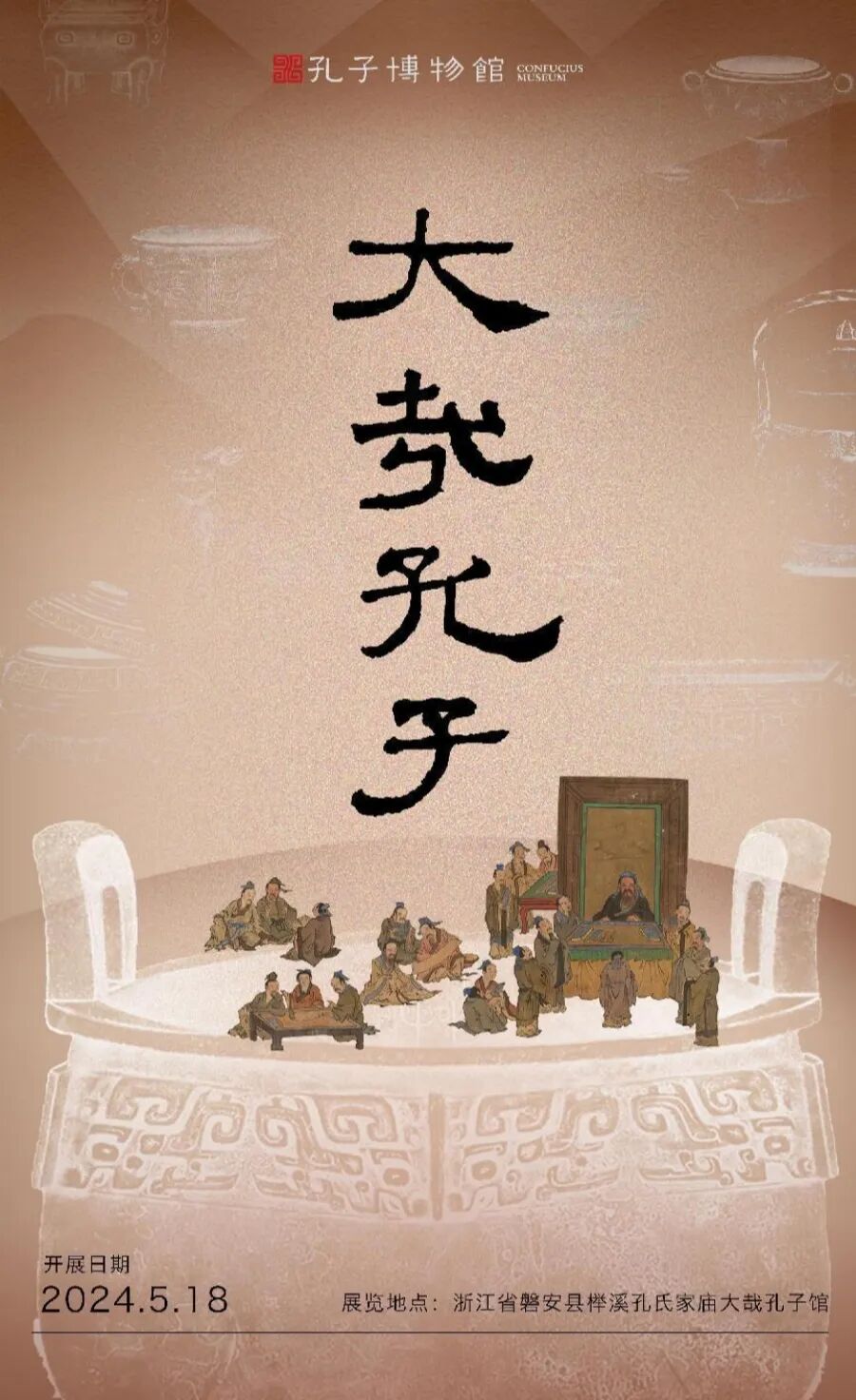 5月18日,《大哉孔子》展览在浙江省磐安县榉溪孔氏家庙大哉孔子展馆举办,该展览是孔子博物馆为庆祝2024年国际博物馆日而举办的特别展览。