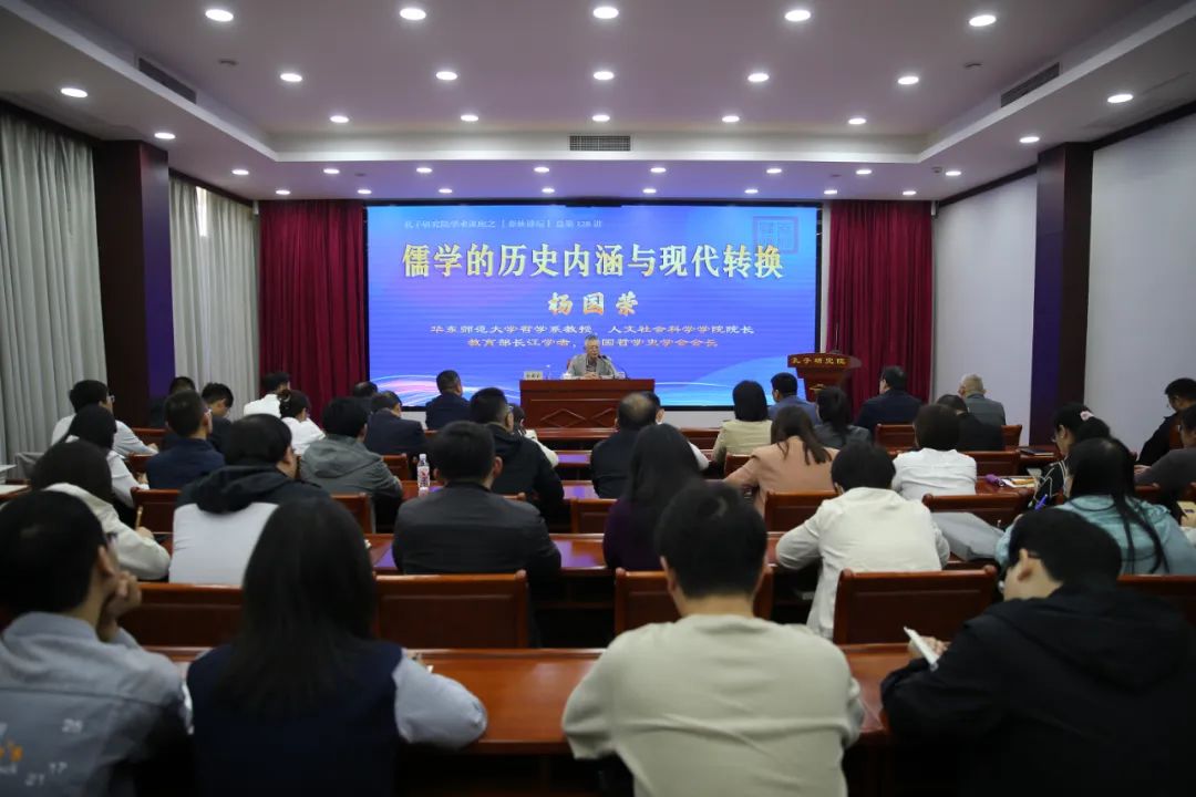 10月10日,春秋讲坛·孔子学术讲座第1讲在孔子研究院举行,华东师范大学哲学系教授、人文社会科学学院院长、教育部长江学者、中国哲学史学会会长杨国荣主讲《儒学的历史内涵与现代转换》。孔子研究院党委副书记、院长、教授孔德立主持讲座。