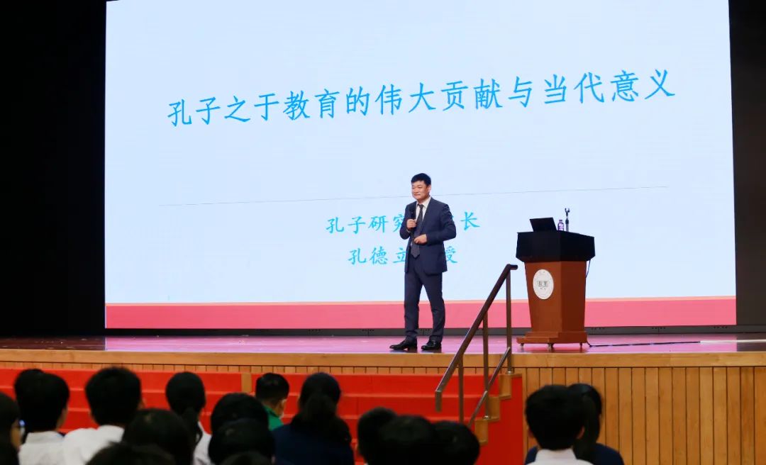 孔德立以《孔子之于教育的伟大贡献与当代意义》为题在中华文化优秀传统文化教育专家报告会上作了演讲。他首先介绍了孔子研究院的基本情况,并从“孔子是谁”“孔子做了什么”“孔子的思想内涵”“孔子对当代教育的启示”几个方面带领大家认识孔子、理解孔子、学习孔子,深入浅出地阐述了孔子教育思想产生的历史根源和社会基础,并呼吁当代教师也应像孔子一样,着力弘扬教育家精神,更好地教书育人,更要担负起新的文化使命,坚持守正创新,坚定文化自信,为建设中华民族现代文明贡献力量。