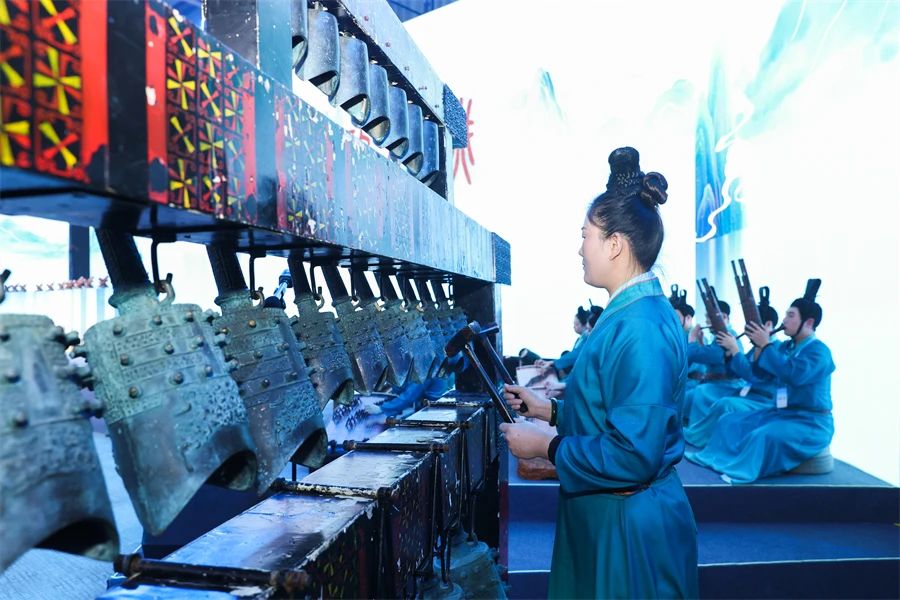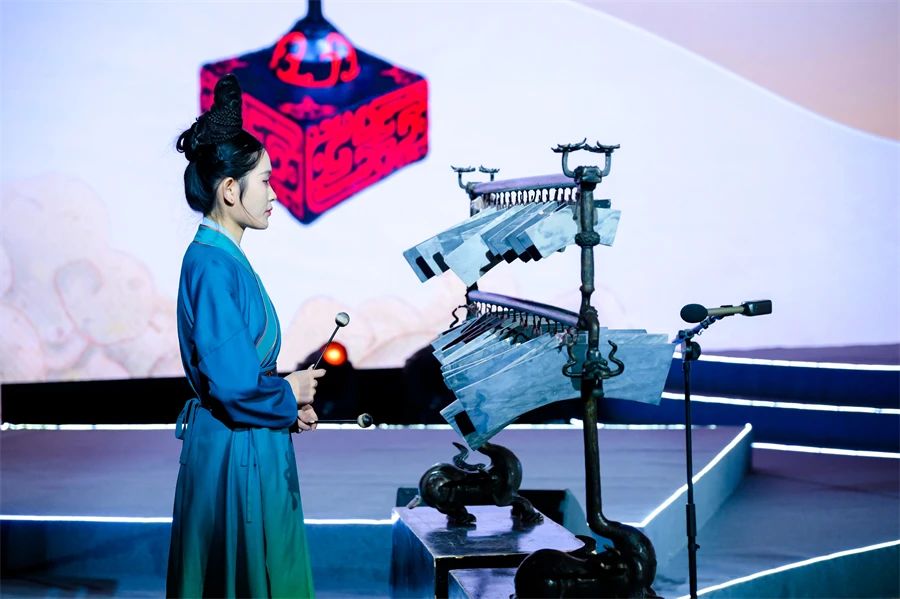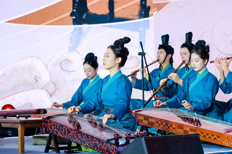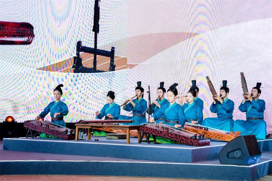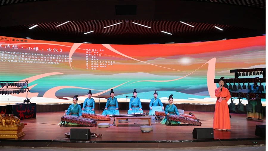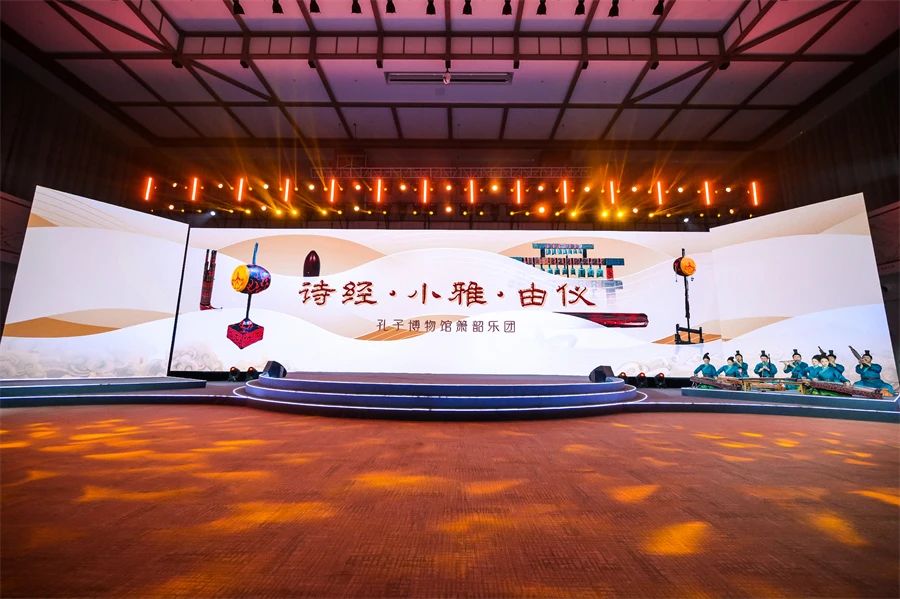 箫韶乐团的乐师们身着传统服饰,奏响八音乐器,为观众带来了《诗经·小雅·由仪》《清平乐》等原创雅乐曲目,雅乐旋律古朴,乐声悠扬,既威严庄重又不失清新雅致,深刻展现了儒家文化的兼容并蓄,和谐共生的精神内涵。箫韶乐团与演员张晓龙携手演绎《弦歌不辍》,更是将活动氛围推向高潮,让儒家文化在新时代的舞台上焕发光彩,展现出勃勃的生机与活力。此次“何以中国·弦歌不辍”网络主题宣传活动,充分展现了中华民族独特的精神气质和鲜明的时代标识。箫韶乐团通过雅乐的演绎,生动讲述了孔子故事,激发了年轻一代对传统文化的浓厚兴趣,为中华优秀传统文化的传承与发展注入了新的活力。