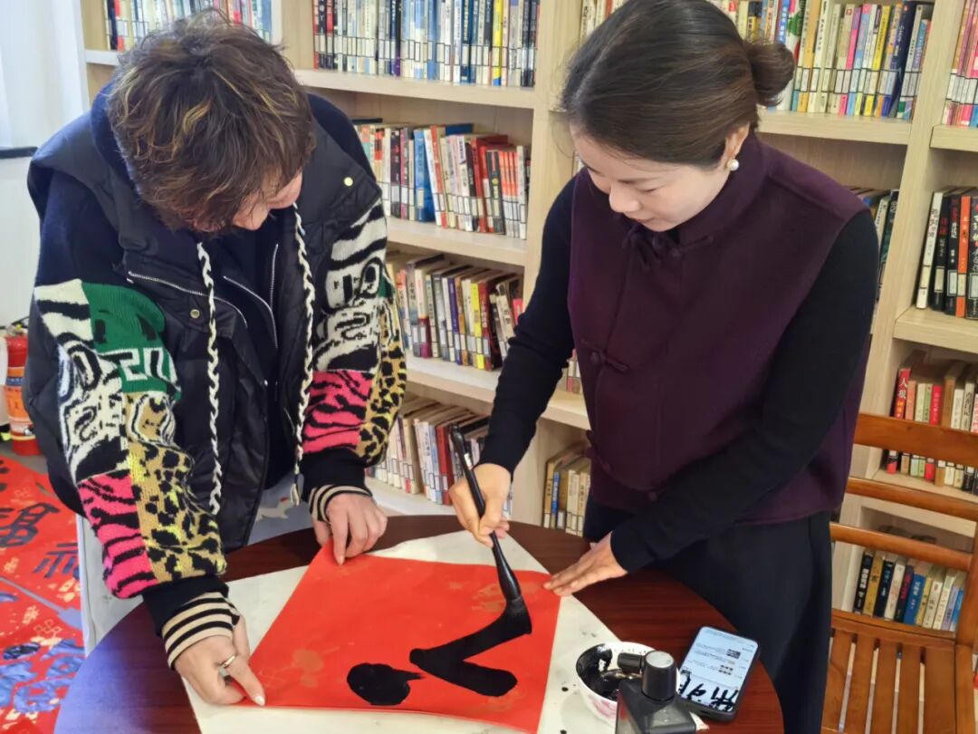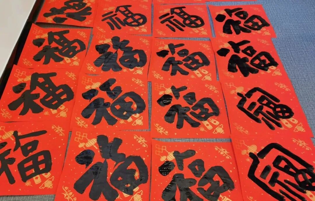 活动现场翰墨飘香,热闹非凡。浙江省书法家协会会员陈建萍、张郎、浙江省女书法家协会会员周红、书法爱好者金琪这四位孔子学堂公益老师全神贯注,挥毫泼墨。压纸、蘸墨、起笔、收笔,动作一气呵成,笔锋游走间,或端庄大气或灵动飘逸的 “福” 字跃然纸上,承载着对新春的美好祈愿;对仗工整、饱含深厚文化底蕴与喜庆氛围的春联作品接连诞生,融入对新年和幸福生活的憧憬,让 2025 年新春别具温馨。