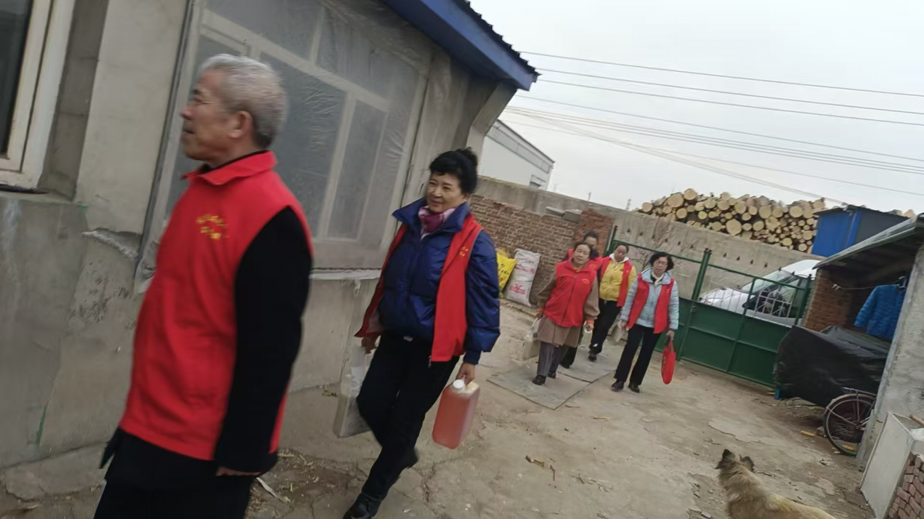 志愿者团队来到袁家村的贫困户贾某某的家——这户因病致贫,靠有政府的低保补助和爱心人士的捐助,才使他们在困境中得以生存,志愿者们送给他们米、面、油。