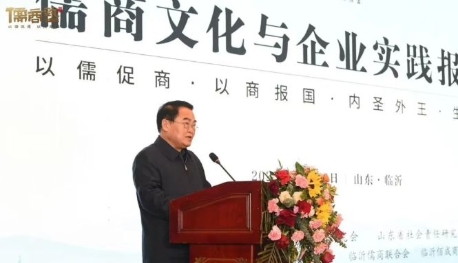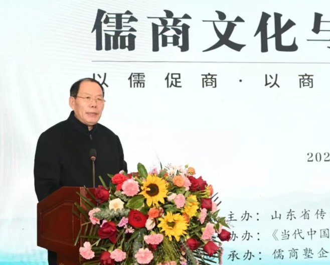 山东省传统文化教育研究会党支部书记、常务副会长谢孟存代表主办方致辞。他指出:儒商文化作为中华优秀传统文化的重要组成部分,是儒家思想与商业智慧的完美结合,蕴含着丰富的商业智慧和道德准则,对现代企业发展具有重要的借鉴和指导意义。博大精深的齐鲁文化,滋养了“厚德载物、诚信为本、义利并举”的儒商精神。他希望广大企业家在追求经济效益的同时,不忘社会责任与道德操守,树立诚信形象,实现企业的可持续发展。