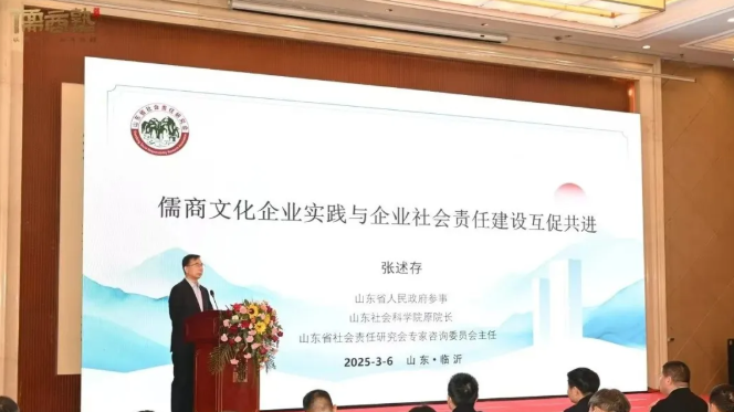 山东省政府参事、山东社会科学院原院长、山东省社会责任研究会专家咨询委员会主任张述存以《儒商文化企业实践与企业社会责任建设互促共进》为主题进行了主旨报告。他指出,在新时代发展征程中,企业发展不仅要追求经济效益,更要承担起社会责任,而儒商文化中的仁义、诚信等价值观正好可以为企业社会责任建设提供强大的精神支撑。当企业将儒商文化融入到自身的社会责任建设中时,就如给企业注入了一股清泉,让企业在发展的道路上更加稳健。这种互促共进的关系,就像是两个齿轮紧密咬合,共同推动着企业向着更好的方向发展。他的报告深入浅出,让与会者受益匪浅。