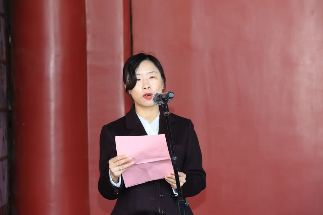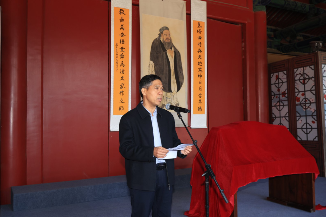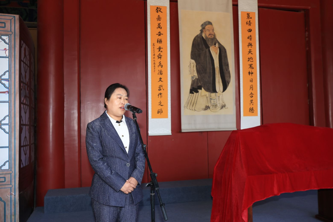 曲阜师范大学优秀传统文化教育中心副主任袁梅主持发布会。在发布会正式举行之前,全体与会人员在诗礼堂向至圣先师孔子像行礼致敬。曲阜师范大学党委常委宣传部部长孙祥广、山东省教育出版社教育理论编辑室主任周红心、济宁文化传承发展中心主任李芳、曲阜市宣传部分管日常工作的副部长梅花先后致辞。