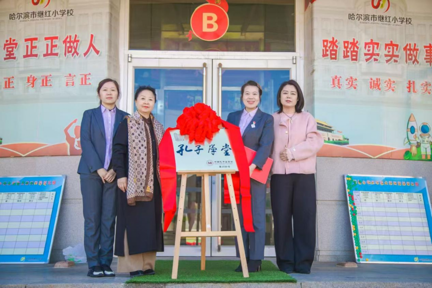 孙丽萍与嘉宾们共同为“继红小学孔子学堂”揭牌,红绸落下,牌匾熠熠生辉。孔子学堂落户各大、中、小学校,为师生深入学习儒家文化搭建了专业平台。在这里,《论语》的学习不再局限于课堂,家庭也能参与其中,通过丰富多样的活动,如亲子、师生共读分享会、经典诵读比赛等,让老师、家长和学生共同沉浸在儒家文化的海洋中,修身立德,启智润心。