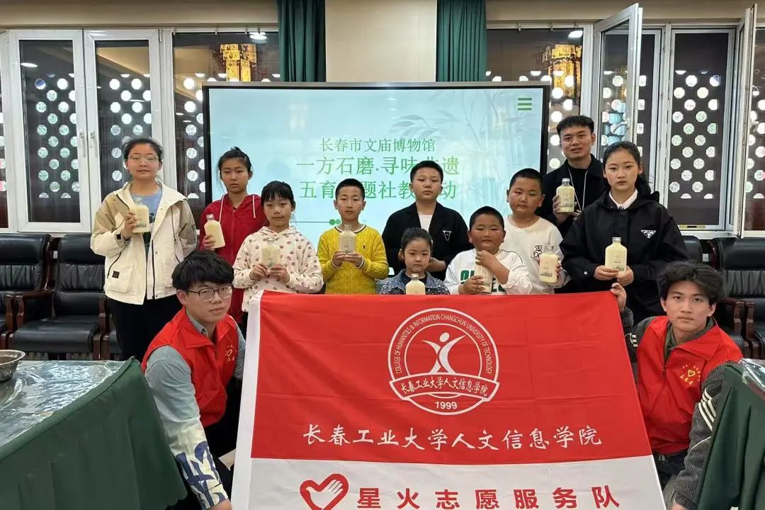 长春工业大学人文信息学院机械与汽车工程学院的学生以志愿者身份深度参与到五育主题社教活动中,在亲手制作“长白山矿泉豆浆”等实践环节中,感受传统技艺魅力。这一创新模式不仅推动非遗文化的活态传承,更为劳动教育提供生动实践场景,丰富了博物馆社会教育的内涵,展现了博物馆在快速变化社会中创新教育形式、满足公众多元需求的能力。