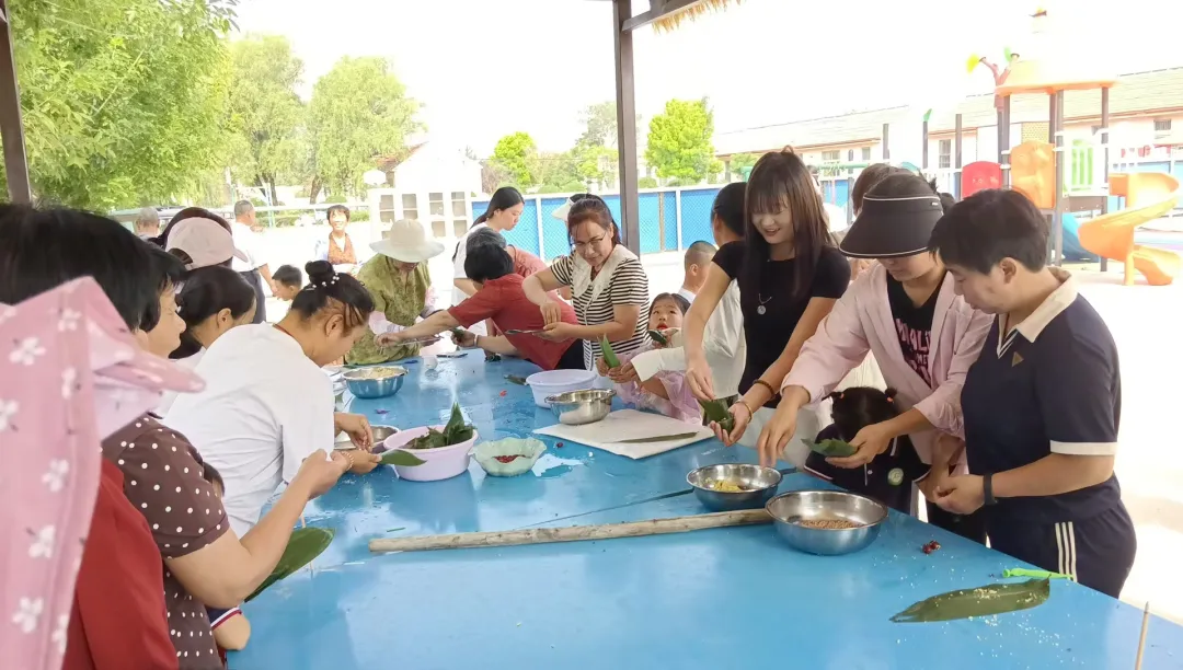“五月五,过端午,赛龙舟、敲锣鼓……” 随着竹板敲响,孩子们带来充满童趣的端午手势舞。他们模仿划龙舟的姿势、做出包粽子的可爱动作,将端午习俗生动展现。包粽子环节更是热闹非凡,家长们按照 “一折叶,二盛料,三压实,四包裹,五扎绳” 的步骤,手艺娴熟、动作麻利。很快,一个个形态各异的粽子新鲜出炉。孩子们迫不及待地分享、品尝自己的劳动成果,甜蜜滋味与幸福笑容洋溢在活动现场。