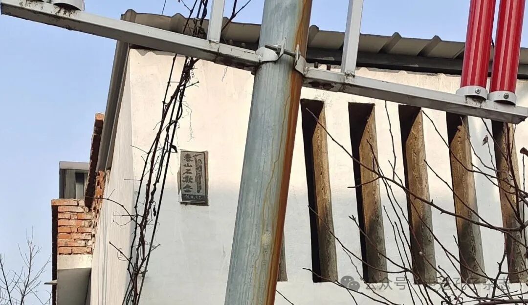泰安市岱岳区房村镇西南望村某民宅墙壁上镶嵌的刻有“勇士”人物形象的泰山石敢当(远景)