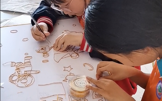 为弘扬传承中华优秀传统文化,近日,商河县白桥镇中心小学孔子学堂开展掐丝珐琅非遗体验活动。日光倾泻的教室里,几双眼睛紧锁于方寸胎板。铝丝在镊尖弯折出0.1毫米精度的弧线,同学们不自觉地屏住呼吸,呼吸随金丝走势起伏。调砂铲悬停在牡丹纹上空,手腕稳如老匠——多一粒砂则淤,少一粒则空。汗珠沿鬓角滑落,在亚克力板上绽开微小水痕,却无人抬手擦拭。当固沙胶漫过最后一缕金丝,胶液涟漪中倒映的紧绷脸庞,正与六百年前的匠影重叠。此刻的寂静里,铜丝化作铝线,窑火变为胶水,唯传承的虔诚亘古未变。