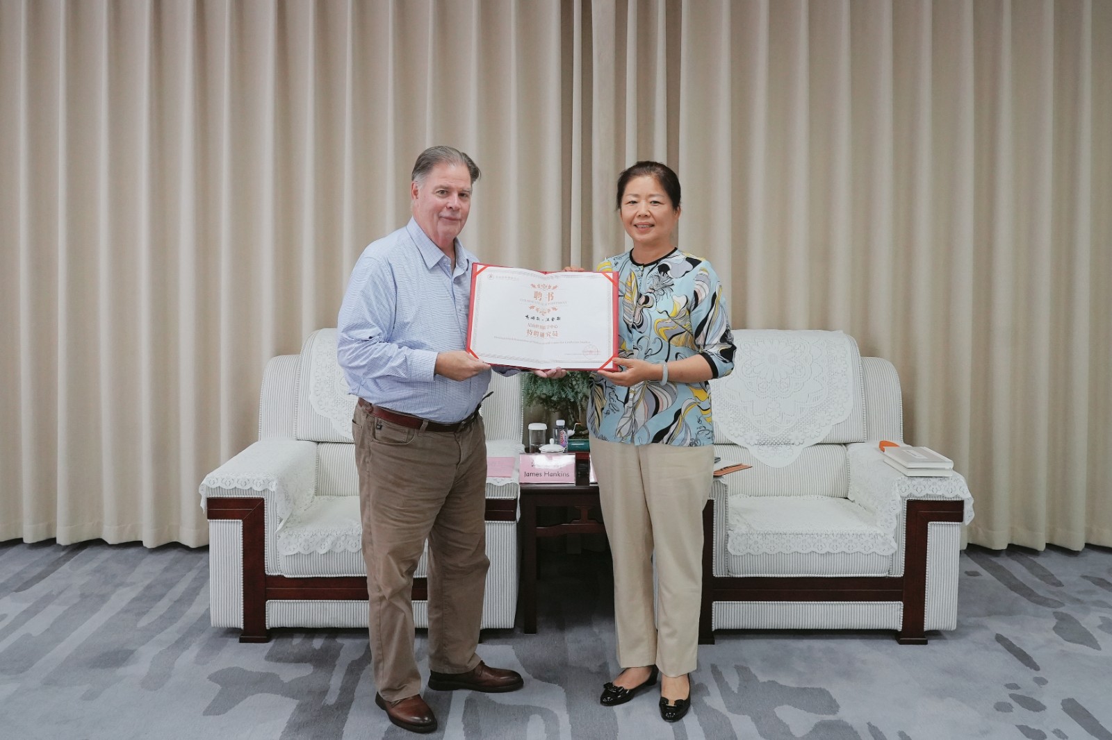 国承彦向汉金斯颁发“齐鲁访学驻研计划”访问学者证书和“尼山世界儒学中心特聘研究员”证书,向杜斯佩颁发“齐鲁访学驻研计划”访问学者证书。