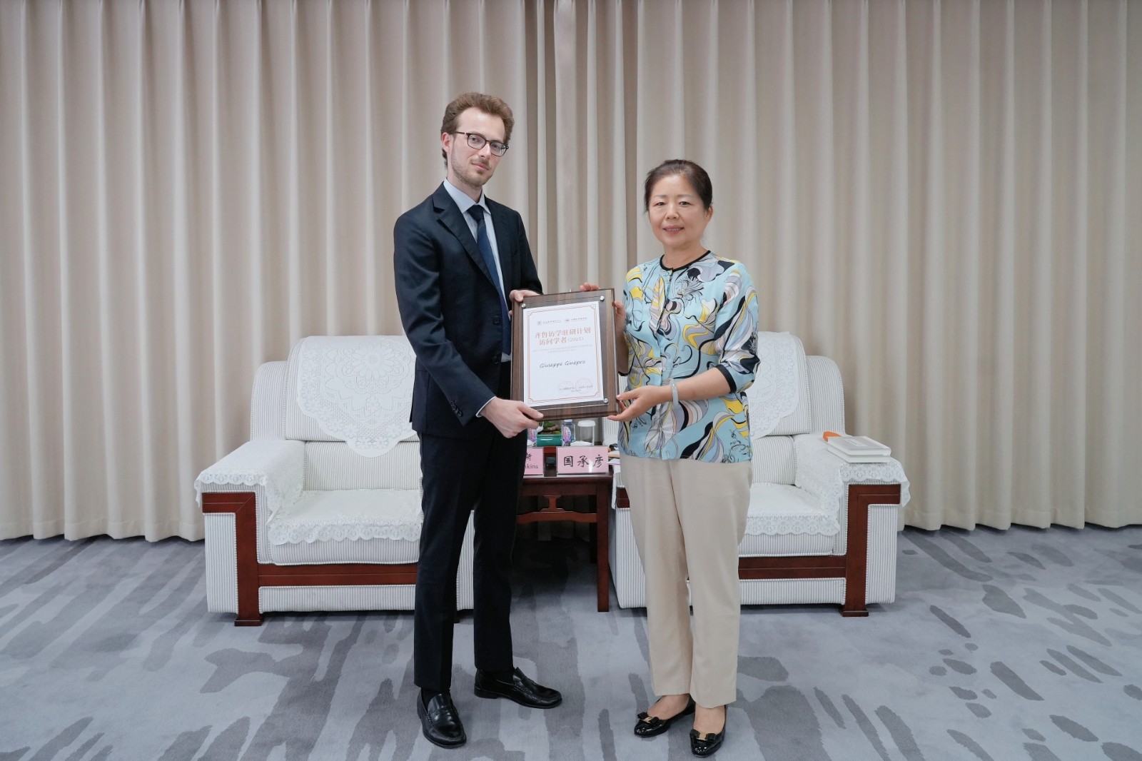7月21日,尼山世界儒学中心(中国孔子基金会秘书处)党委书记、副主任、中国孔子基金会副理事长、秘书长国承彦在济南会见“齐鲁访学驻研计划”访问学者——哈佛大学历史学教授、圣母大学伦理与文化中心访问研究员汉金斯,意大利联合校园大学副教授杜斯佩,并向他们颁发证书。