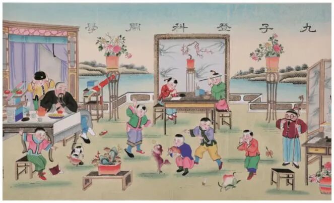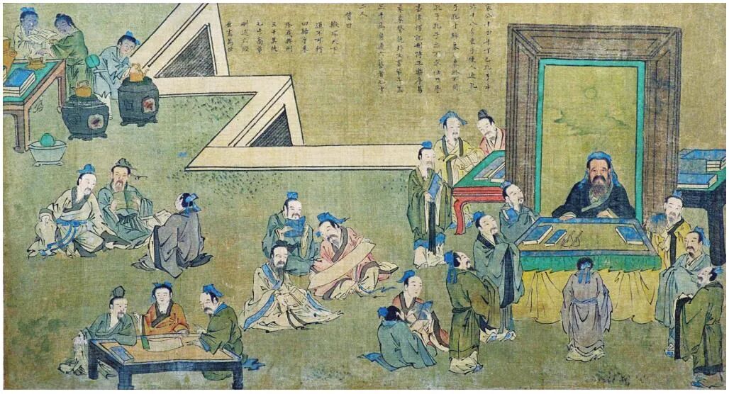 《圣迹图·杏坛礼乐》中的孔子与弟子们