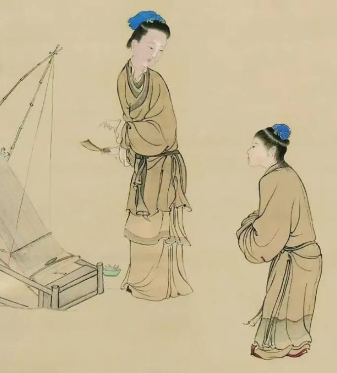 清·康涛《孟母断机教子图(局部)》(北京故宫博物院藏)