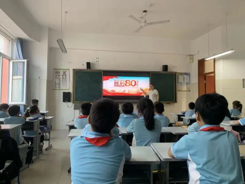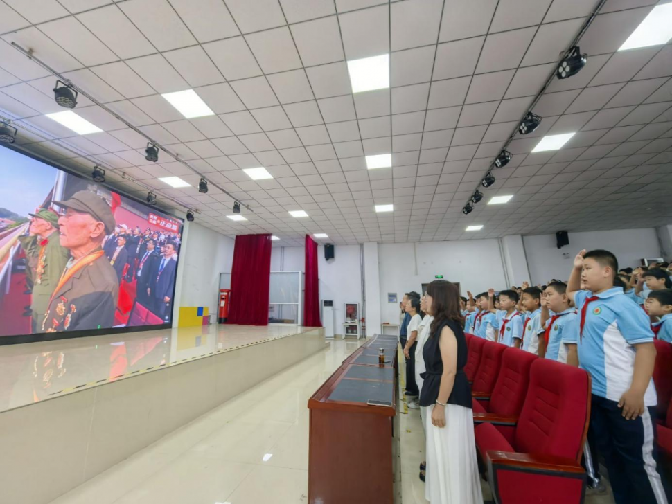 9月3日,值纪念中国人民抗日战争暨世界反法西斯战争胜利80周年纪念日,山东省济南市商河县孙集镇中心小学孔子学堂以“铭记历史·崇文尚武·兴邦育人”为主题,组织师生观礼阅兵盛典,融儒家精髓于爱国主义教育,启迪少年涵养家国情怀、自强精神。