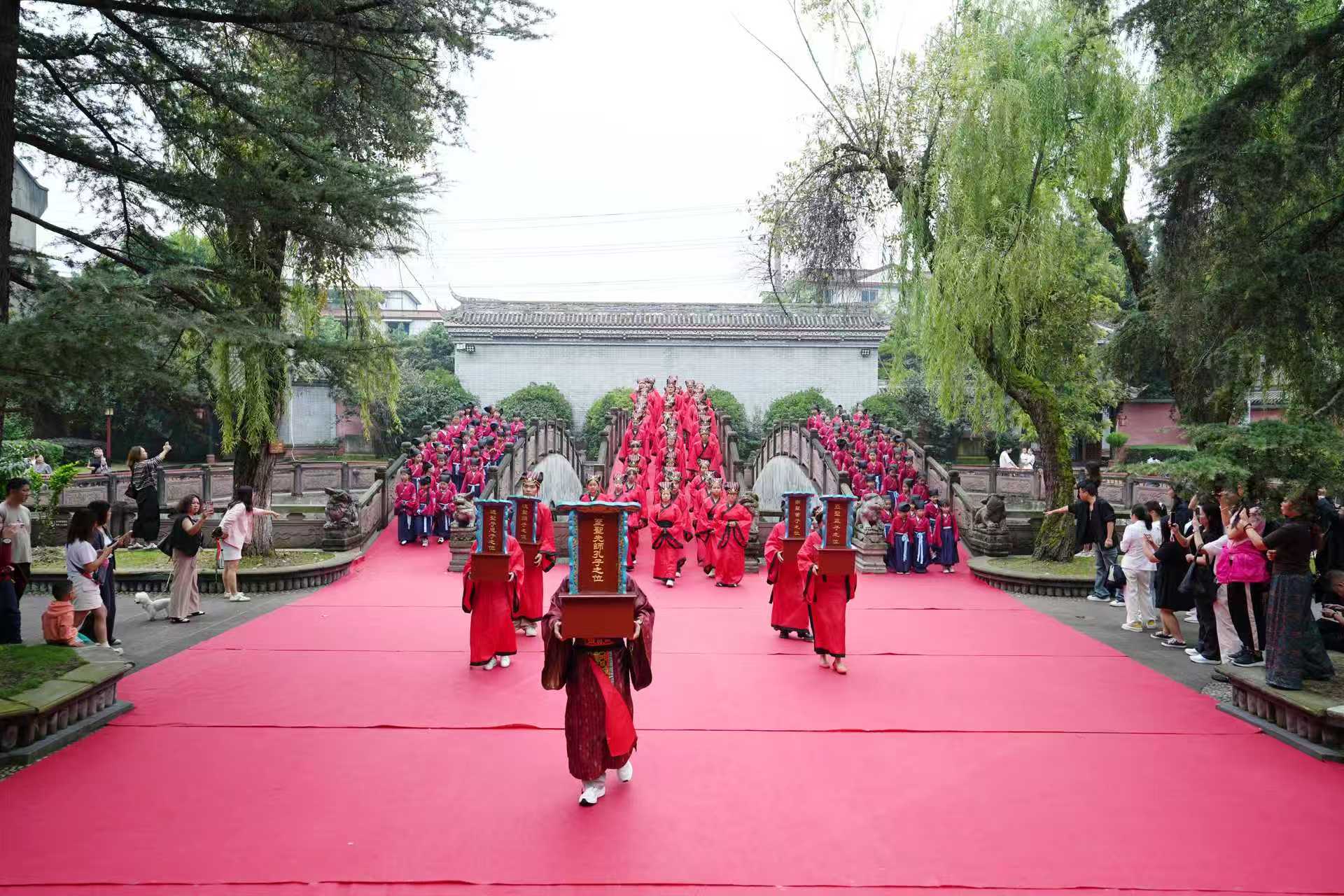9月28日,2025中国国际孔子文化节全球“云祭孔”活动暨2025乙巳年崇宁文庙祭孔大典隆重举行。祭孔大典由成都师范学院孔子学堂指导,成都蜀都文化旅游投资发展有限公司主办,汇聚了留学生、本地大学中小学生与传统文化爱好者,通过“祭孔大典+开笔礼”的沉浸式礼乐盛宴,生动展现了中华优秀传统文化创造性转化、创新性发展的时代活力。