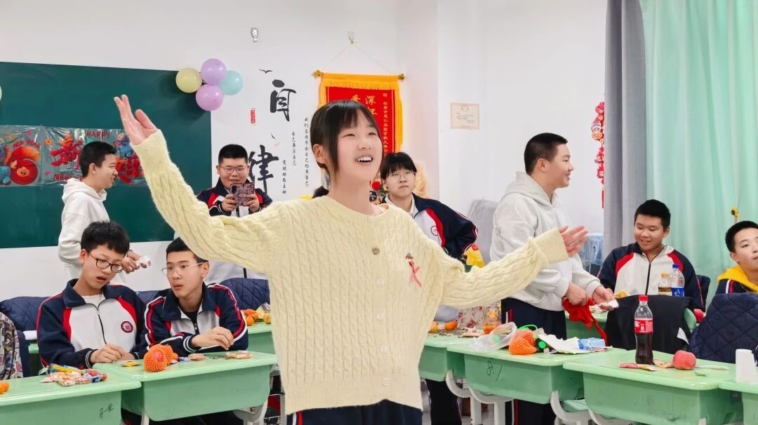 各班主持人自信昂扬,尽显慧仁少年的朝气与风范,点燃了班级的欢乐氛围。才艺展示环节异彩纷呈。课桌舞表演铿锵有力,同学们以整齐划一的动作,将蓬勃向上的理想信念融入举手投足之间,满溢着少年的飒爽意气。歌曲联唱环节,师生依次登台献唱,歌声婉转悠扬,真挚情感化作和谐乐章,满溢育人温度。语言类节目诙谐幽默,皆由同学们自主编排,将少年的奇思妙想与蓬勃创造力展现得淋漓尽致。