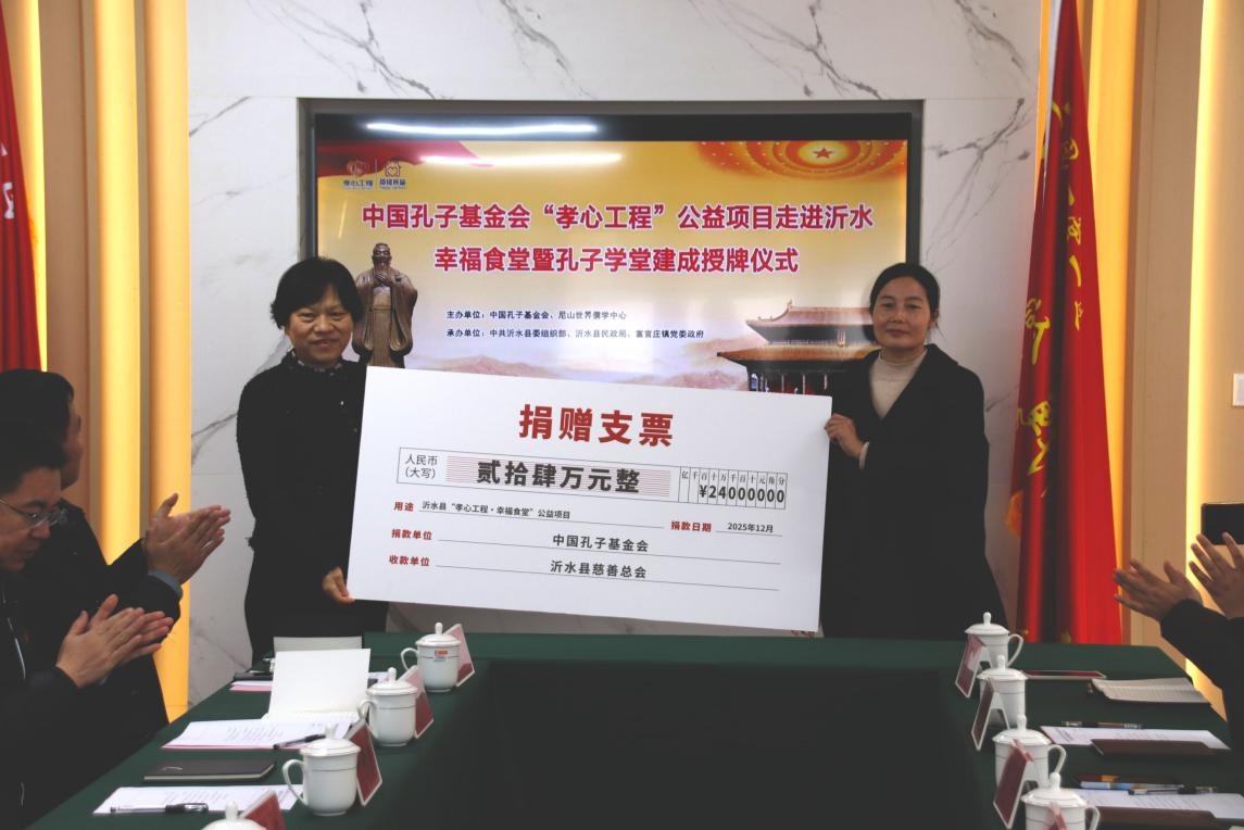 仪式上,中国孔子基金会向沂水县慈善总会递交捐赠支票。