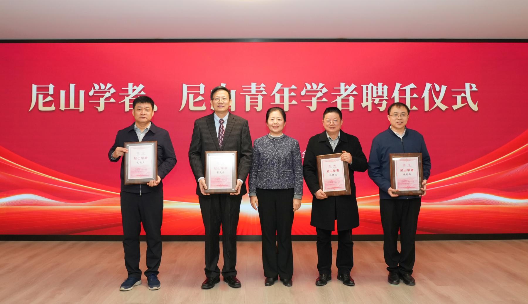 国承彦向蔡先金、沈顺福、孔德立、魏衍华颁发“尼山学者”聘书