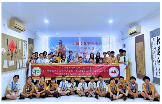 2025年12月20日至22日,印尼大道文化研究中心孔子学堂在廖内群岛省巴淡市成功举办第二期“孝泽童心”青少年公益研学营。本次活动共吸引148名当地初中生参与,通过沉浸式学习儒家孝道、体验书法艺术及中印尼传统草药文化,引导学生深入领会“仁爱”与“自然和谐”的精神内涵。