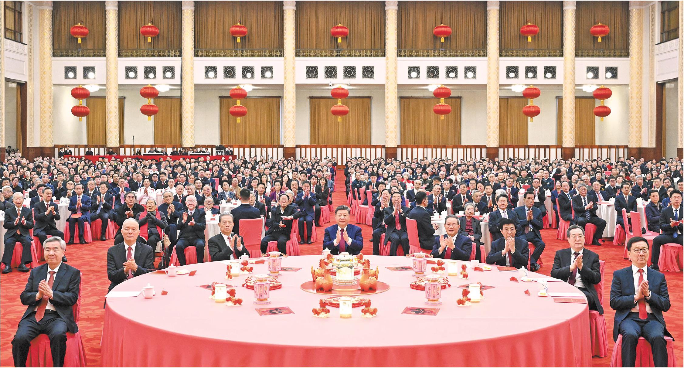 2月14日,中共中央、国务院在北京人民大会堂举行2026年春节团拜会。党和国家领导人习近平、李强、赵乐际、王沪宁、蔡奇、丁薛祥、李希、韩正等同首都各界人士欢聚一堂、共迎佳节。□新华社记者谢环驰报道