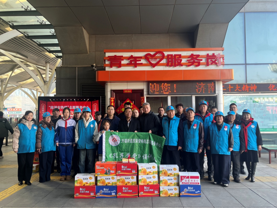 在学堂主任房泽安的组织带领下,志愿者们携带20多箱桶装方便面、榨菜片和饮料赶到公交公司,送上孔子学堂志愿者和爱心人士的一片心意,希望通过公交员工的周到热情的服务,把爱心送至每一位旅客手中。这已是兴福街道孔子学堂在春节、国庆长假期间前往公交、地铁和高铁站开展此类公益活动的第四个年头。他们或直接配合站内员工为旅客服务,或通过慰问形式向坚持加班的员工送去慰问品。本次活动也一并得到了山东一品金贵公司总经理孙强的倾情捐助。