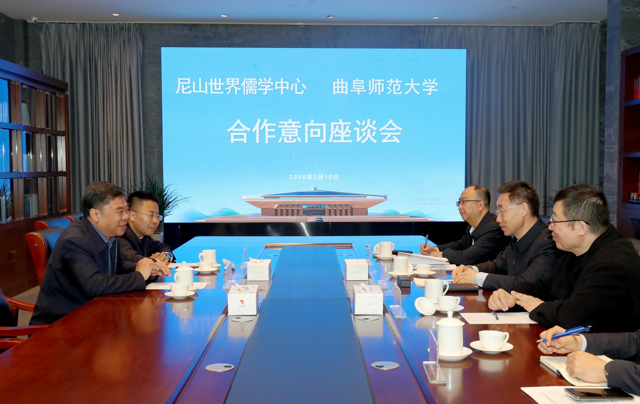儒学中心(基金会秘书处)党委委员、副主任、孔子博物馆馆长郭思克,曲阜师范大学党委常委、副校长李登旺,以及双方有关部门负责同志参加座谈。