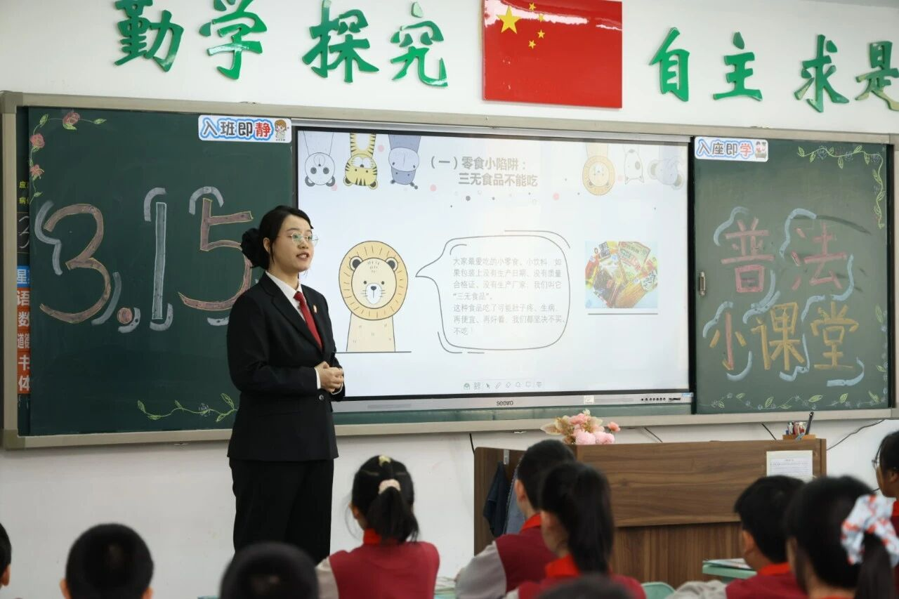 活动现场,青年干警赵松以“守护我的‘小钱包’”为切入点,结合小学生日常消费场景,用生动鲜活的案例、通俗易懂的语言,深入浅出地讲解了“3・15”国际消费者权益日的由来、校园周边常见的消费陷阱、理性消费小技巧及侵权后的合法维权途径。针对同学们关心的网络购物、文具选购等热点问题,干警们以案释法、以法论理,手把手教大家识别商品合格标识、拒绝不合理消费,并明确告知“遇到侵权要第一时间向家长、老师求助”的维权原则,让抽象的法律知识变得可感可知、易学易用。