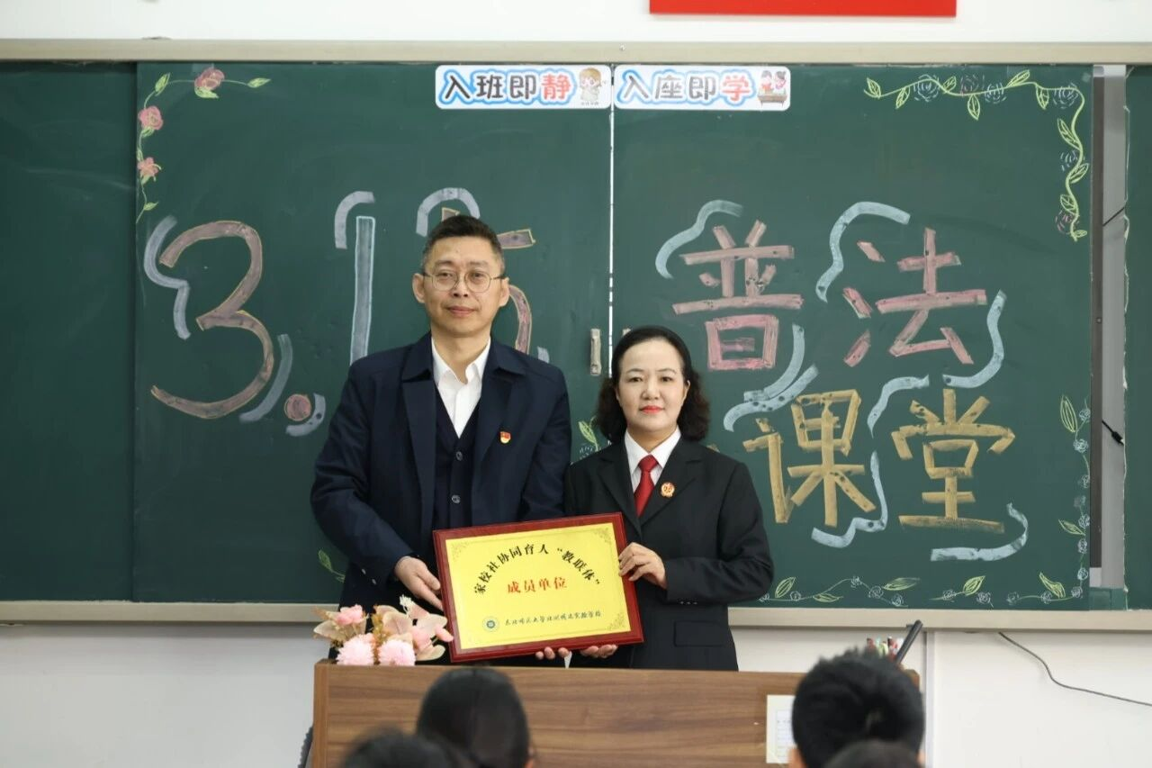 活动尾声,举行“家校社协同育人教联体成员单位”授牌仪式,校长代表学校向新区法院授牌,标志着校院协同育人迈出实质性步伐。学校始终以“立德树人”为根本,此次合作是构建“四位一体”育人新格局的生动实践,未来将持续整合资源,让法治教育融入校园生活。