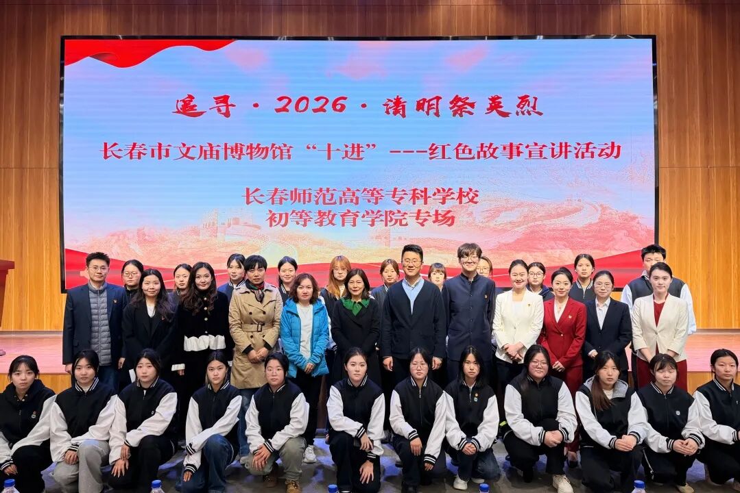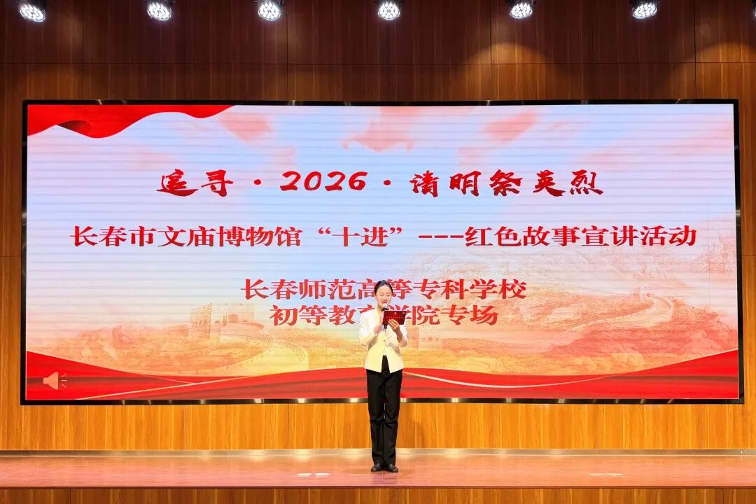 为缅怀革命先烈、传承红色基因,在清明节来临之际,4月2日,长春市文庙博物馆爱国主义宣讲团走进长春师范高等专科学校初等教育学院,开展“追寻·2026·清明祭英烈”红色故事宣讲活动,为师生们带来一堂生动深刻的红色基因“思政第一课”。